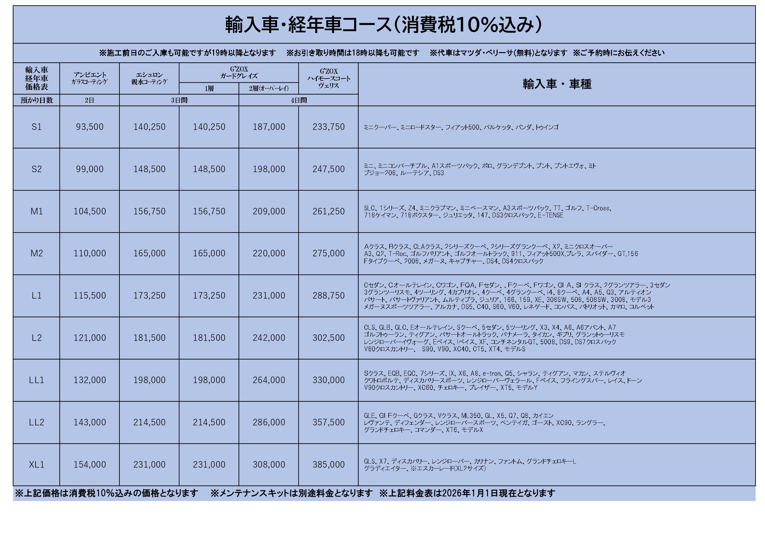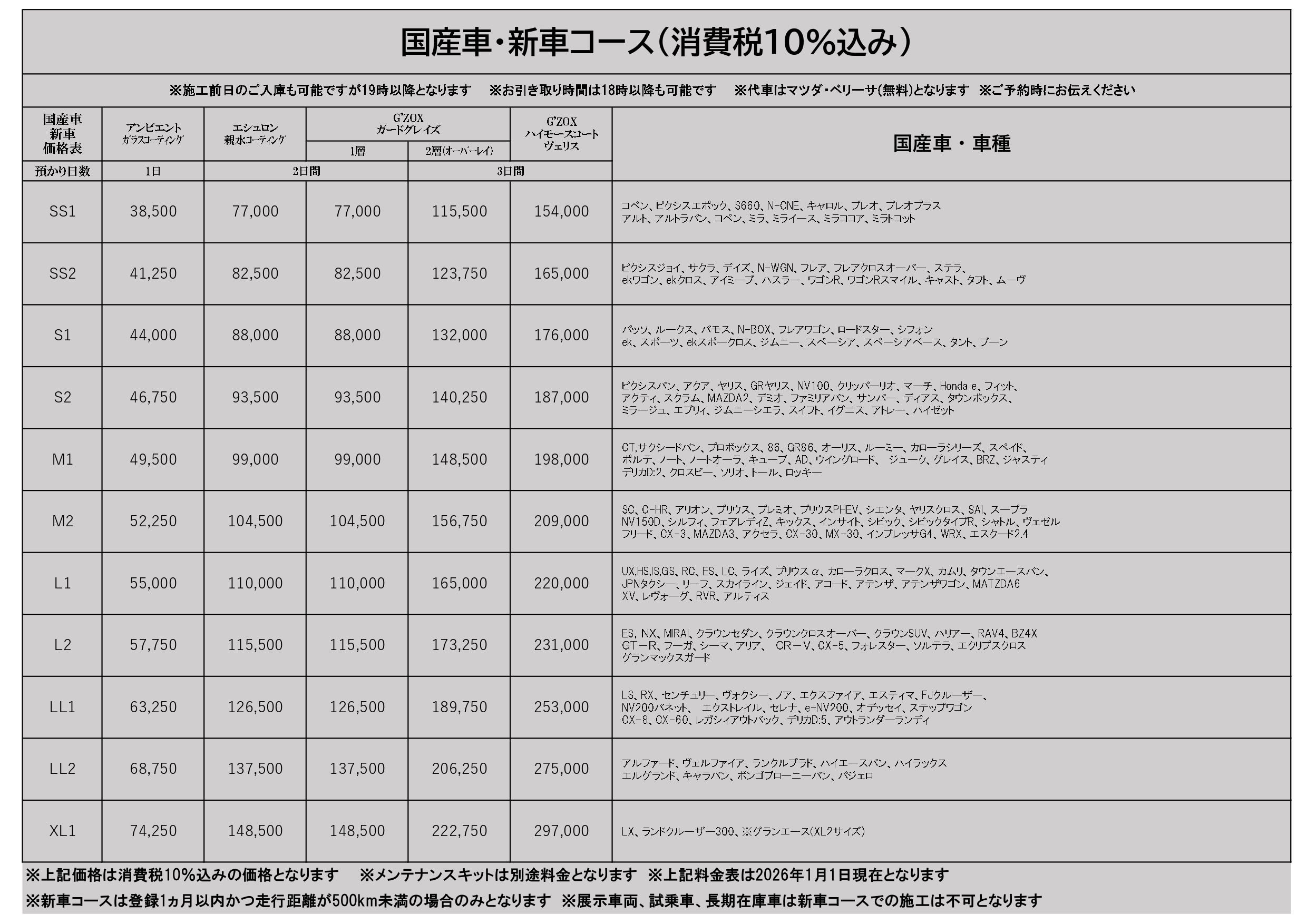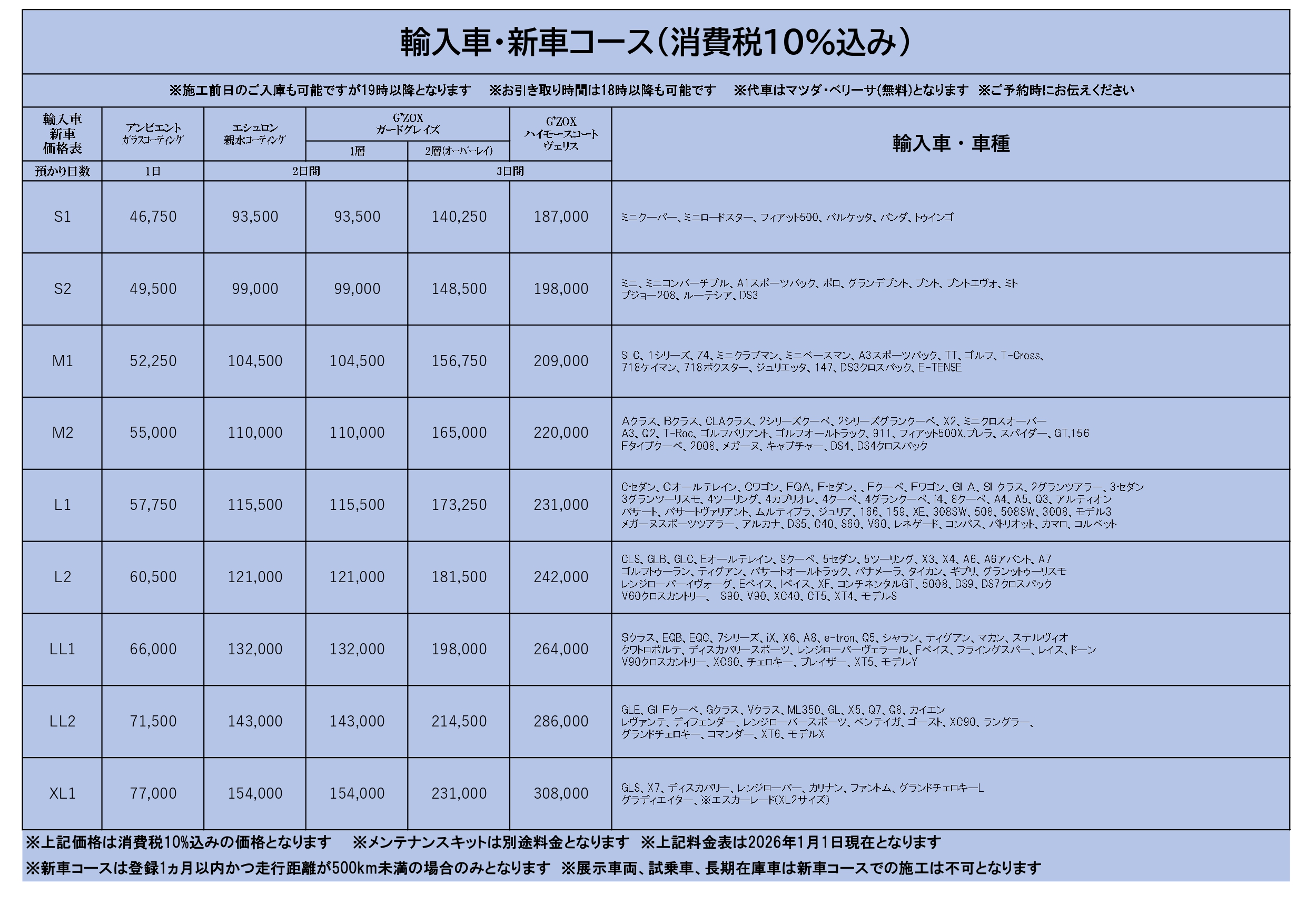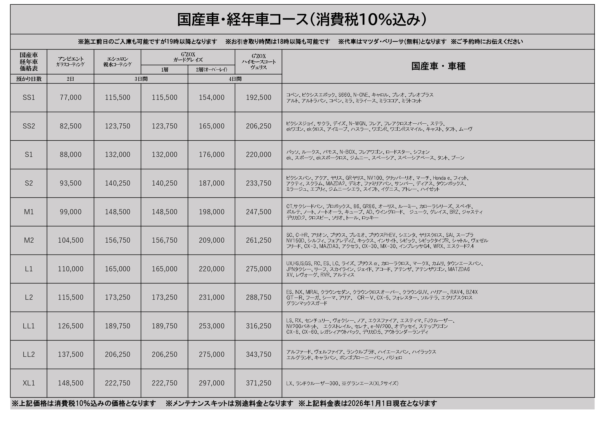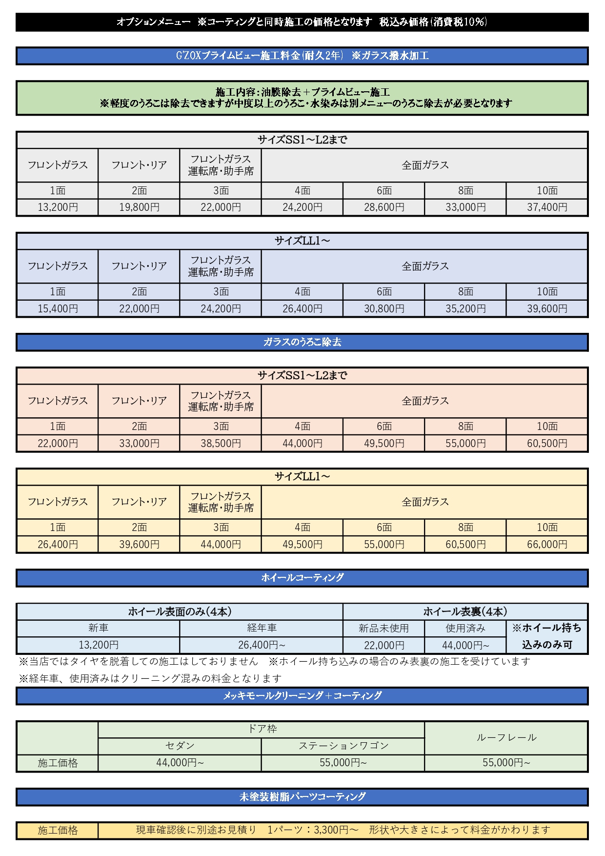 | お願い | カーディーラーに出張施工に行くため留守にすることが多々あります。 事務所(朝霞市)にいる場合もあります ご来店前に電話にてご連絡ください。 |