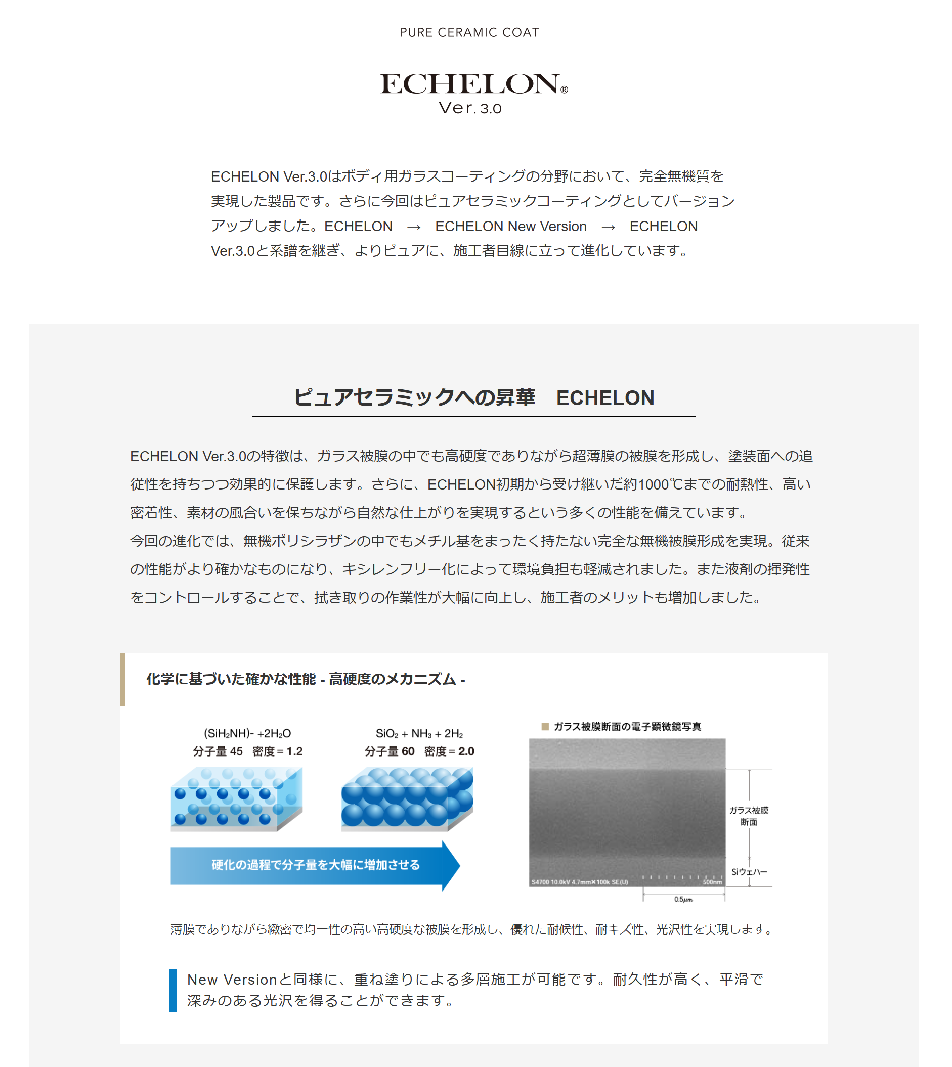 正式名称はエシュロンver3ピュアセラミック親水コーティングとなります(2024年5月に新発売)現在当店でテスト中ですが良い結果がでているので採用を決めました親水コーティングを希望される方、屋外保管で普段あまり車を使用しない方、洗車をあまりしない方などに向いています